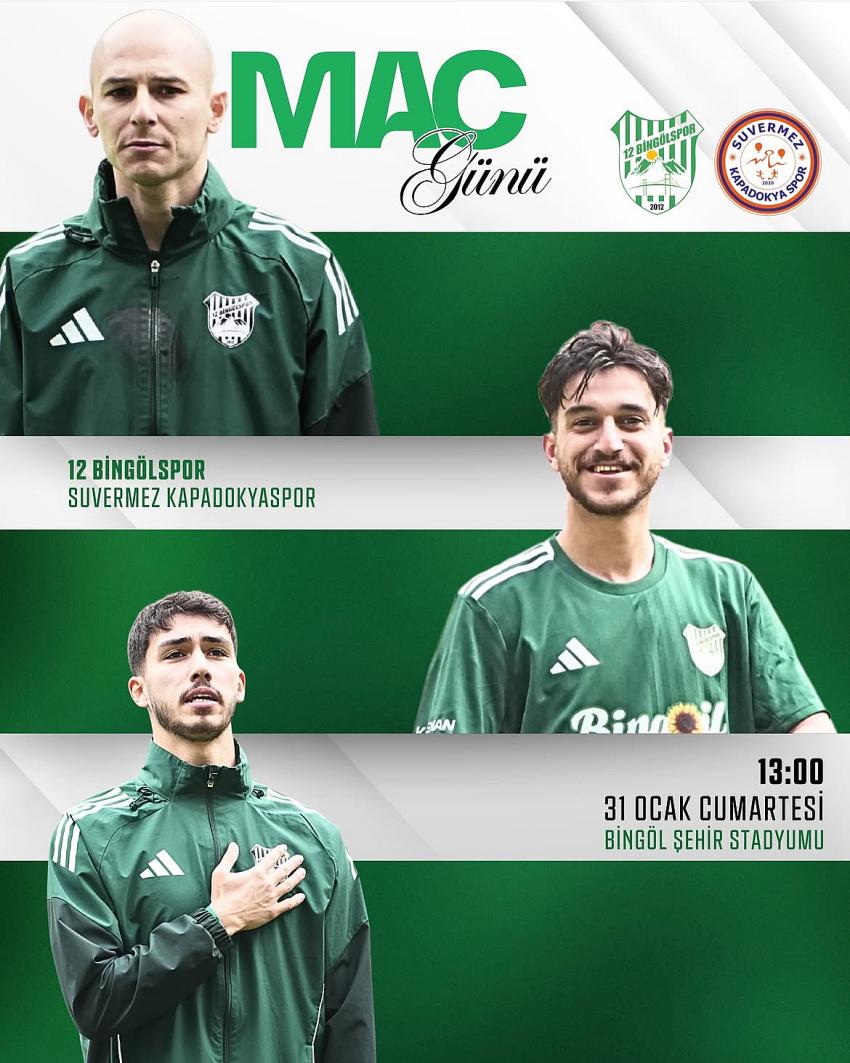 Yeşil beyazlı temsilcimiz 12 Bingölspor, 23 Mart Pazar günü saat 13:00’te Şehir Stadyu...